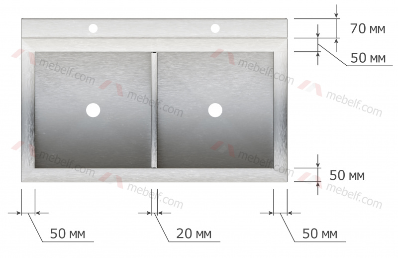| Ванна моечная двухсекционная Без борта "Бизнес" ВМБ 600/2 |