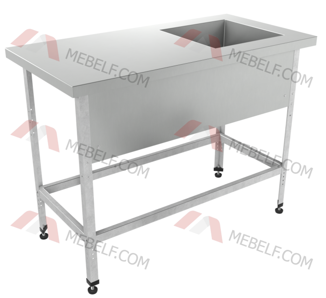 | Ванна моечная с рабочей поверхностью правая ВМРП "Бизнес" 1500х700х860, без борта |