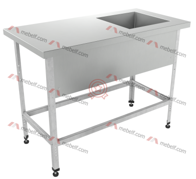 | Ванна моечная с рабочей поверхностью правая ВМРП "Бизнес" 1500х700х860, с бортом |